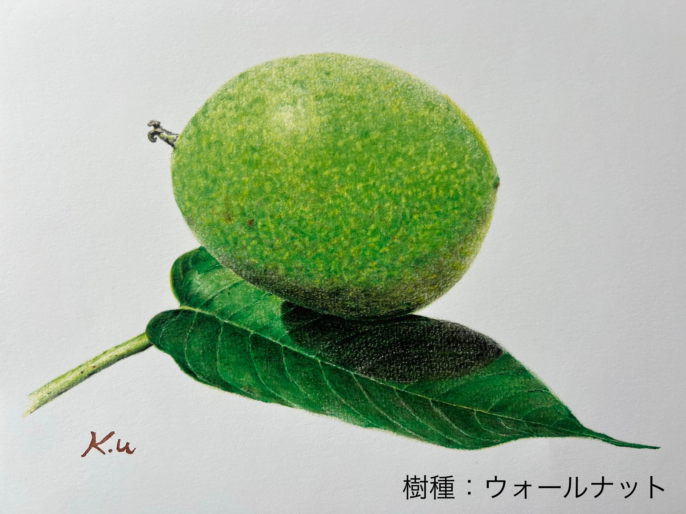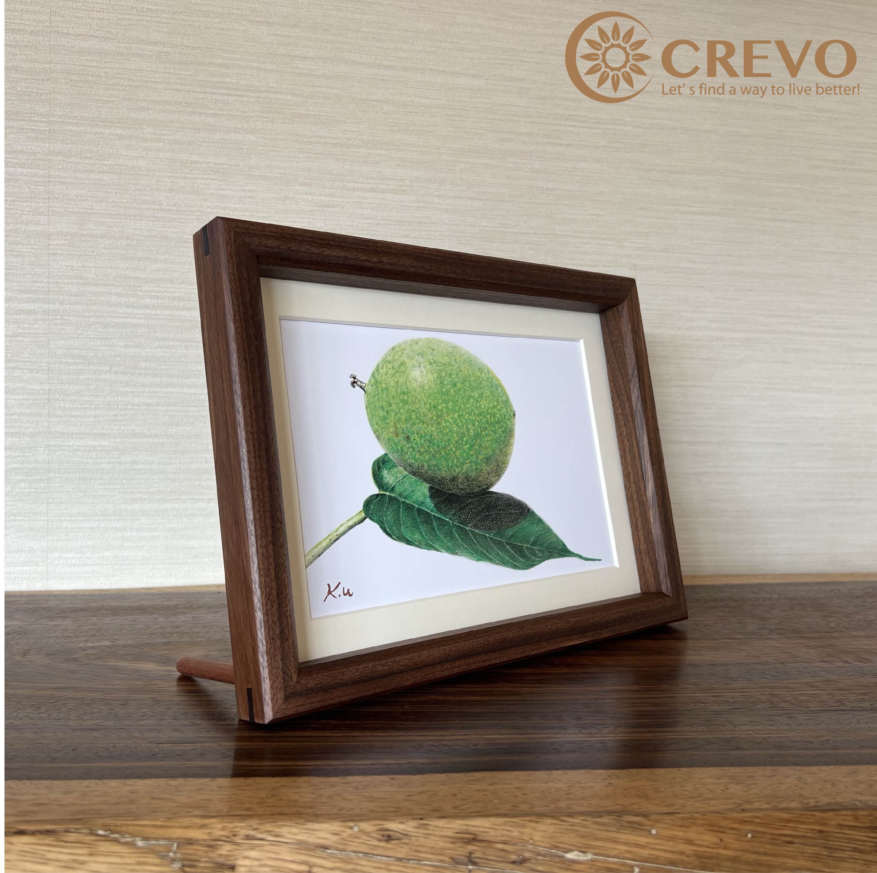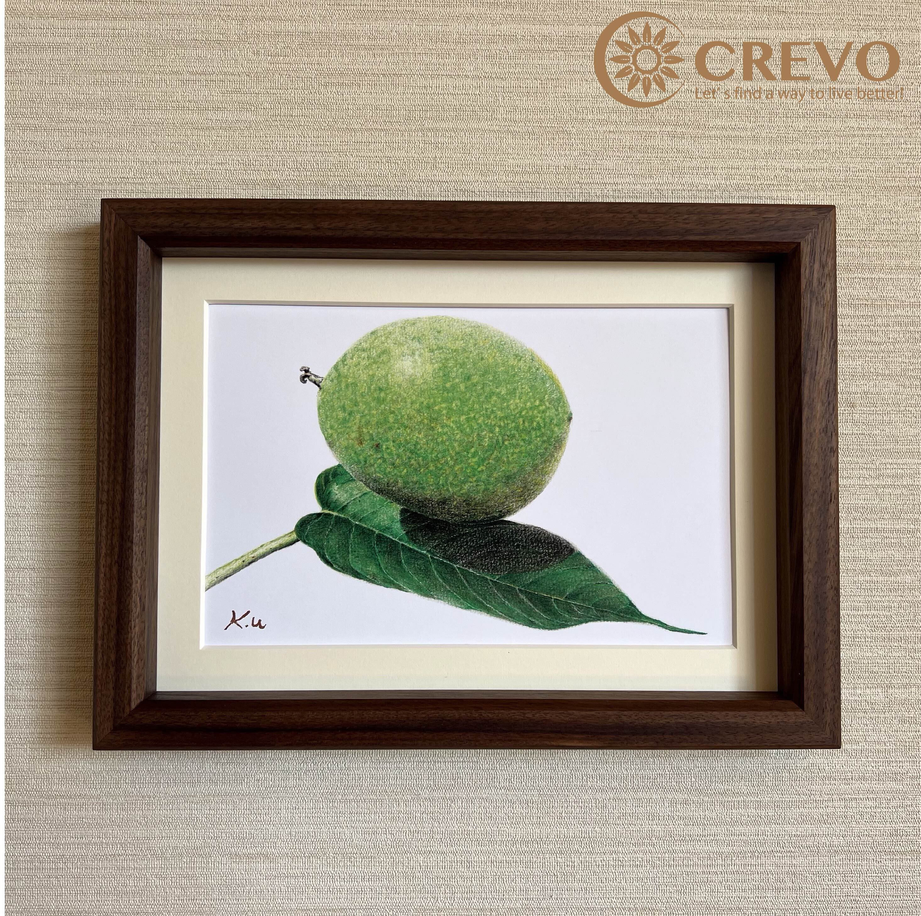 そんな木工品の中で、世界三大銘木であるウォールナット、チーク、マホガニーは特に人気の高い樹種の魅力を、色鉛筆で繊細に表現した美しい葉っぱの絵画です。